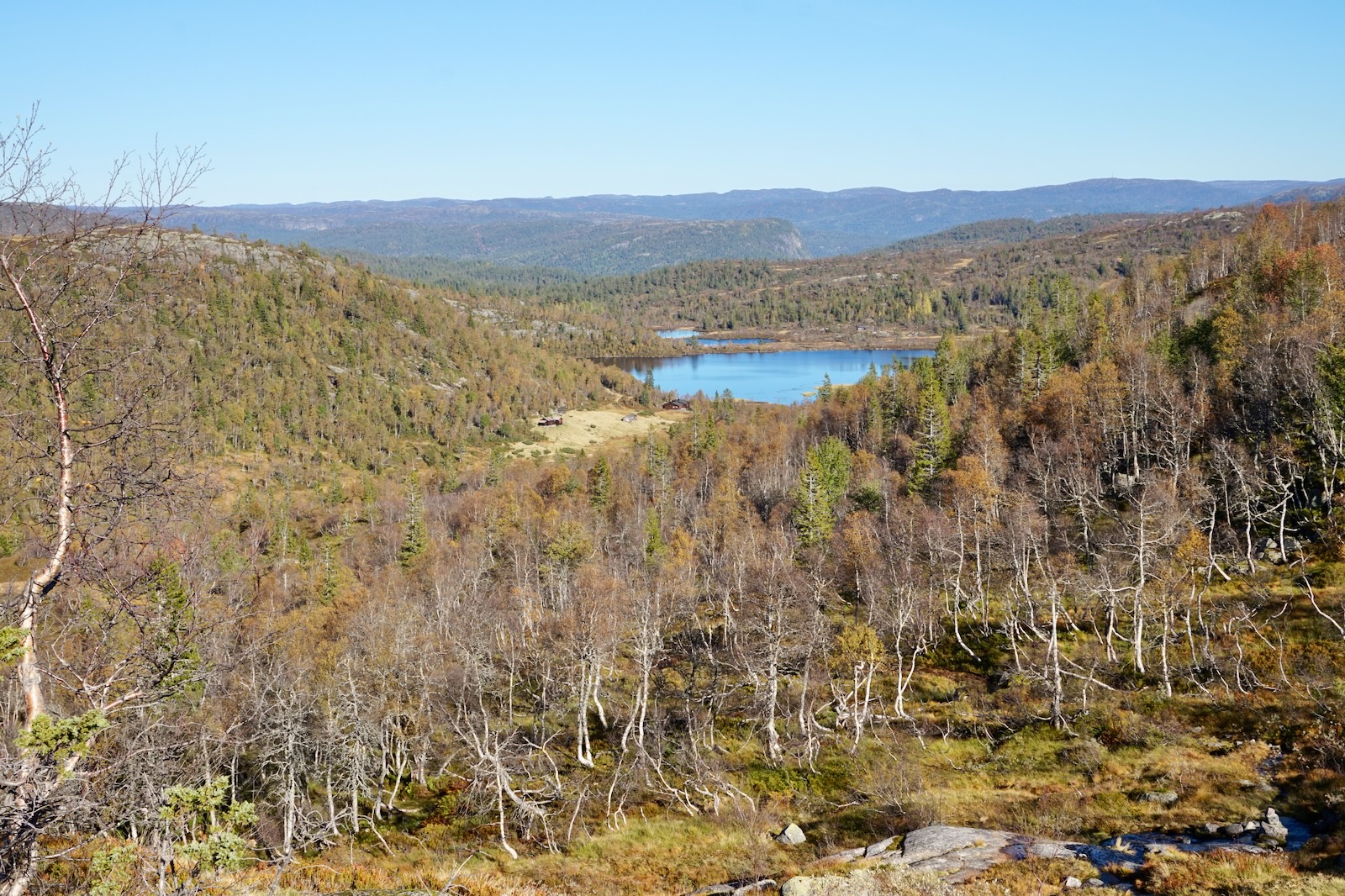 Lykkjevatnet på 864 meters höjd. ![]() ![]() Det var mycket upp och ner, och det mjuka gungande underlaget sög långsamt men effektivt musten ur mig. Fortfarande hade jag cirka fyra kilometer kvar till Tjønndalen där jag eventuellt skulle övernatta. Men en tanke började formas i mitt huvud – kanske skulle jag, om jag höll lite tempo, hinna med kvällsbussen som skulle gå lite senare nerifrån dalen? Min mat var nämligen nästan slut, och jag började längta rejält efter att bara få sitta ner och beställa en hamburgare någonstans! Jag beslutade mig för att gå fort till Tjønnebu och kolla in matförrådet där, och sedan ta ett beslut. ![]() Trött och aningen stressad som jag nu var, lyckades jag självklart tappa bort stigen ett antal gånger efter att den förra bilden togs. Här kan jag dock äntligen se ner på den gamla stugan Tjønndalen, lite till vänster om bildens mitt. Den var fin, men det fanns ingen proviant i den. En kort paus och överläggande med mig själv resulterade i att jag fortsatte gå, ner mot dalen i bakgrunden och den stora vägen och busshållplatsen. ![]() Snart nere i Langeid i Setesdalen, och fin utsikt norrut i dalen. Men jag var sliten! Nedförsbackarna frestade på knän och lår. Någonstans här lyssnade jag färdigt på ljudboken, men kunde inte få ihop någonting vettigt av det jag hörde – fick lyssna om på slutet när jag var vid mina sinnens någorlunda fulla bruk igen! På den korta bussresan ifrån Langeid till Valle somnade jag av utmattning. Jag tvingades dock att rycka upp mig, för ifrån Valle hade jag sedan tre kilometer och trehundra höjdmeter ytterligare att gå upp till bilparkeringen. Sällan har jag varit så glad att återse bilen som när jag stapplade fram mot den i beckmörkret den här kvällen. Det förtar dock inte att det hela varit en fantastisk tur. Kanske en av de finaste naturupplevelser jag haft under de senaste åren. Det blir nog fler fjällturer trots allt. :)